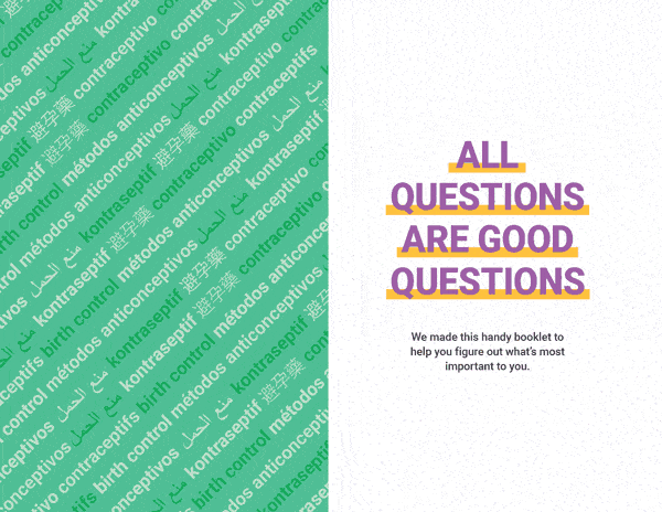 The Welcome Booklet and postcards also reinforce our preferences-oriented approach. The booklet begins with the question, “How do I choose the right birth control for me?” The subsequent pages offer questions and choices to consider when answering that very question. The postcards offer a quick snapshot of how the method works, whether it has hormones, and potential benefits and side effects.